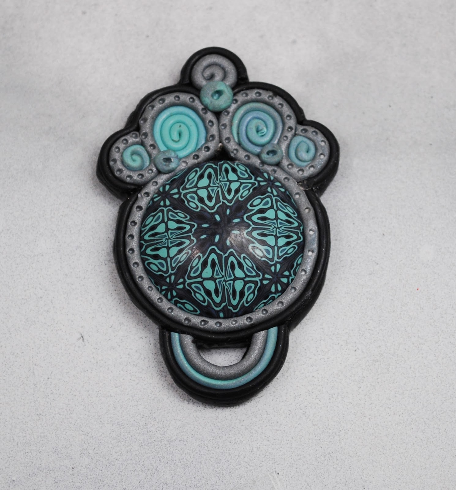Several months ago my brother asked me if I would create a pendant with the likeness of his mother-in-law, Phyllis. She had passed away this year and he wanted to give these pendants, as Christmas gifts, to those who loved her. Of course I said yes. I knew it was going to be a great opportunity to challenge myself and to work together on an art piece with my brother. If you have been reading my blog you know that last year I created pendants for all of the women in the family. This pendant was of my grandmother and was taken from an old photograph. I never knew my grandmother and the only requirement was that it look sorta like her photo. Here is a picture of the mosaic cane that I made.